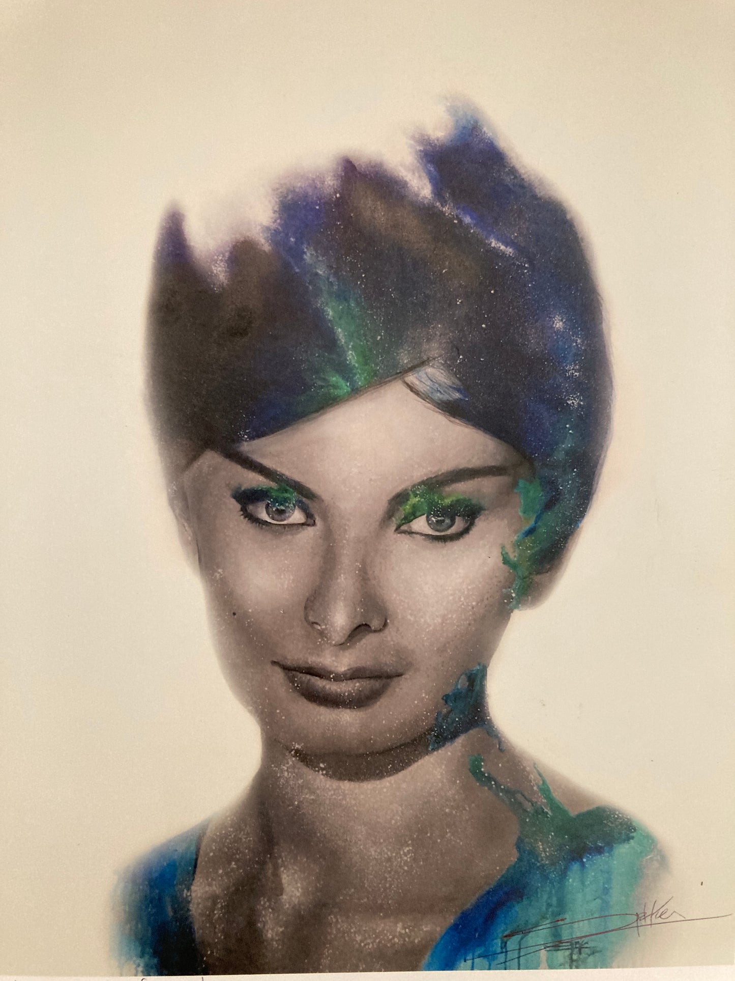 Sophia Loren. Con ojos de gato y una voz seductora, Sophia Loren es la única diva viva de la colección Femmes Fatales. Ella se fusiona con una nebulosa porque todos somos parte del universo. Su vida dio un giro inesperado para mejor cuando, a los 14 años, participó en un concurso de belleza y quedó como una de las finalistas. Fue aquí donde Sophia llamó la atención del productor de cine Carlo Ponti, unos 22 años mayor que ella, con quien más tarde se casó. En 1991, Sophia recibió un Premio de la Academia Honorario por su trabajo y fue declarada "uno de los mayores tesoros del cine mundial". Ese mismo año, experimentó una pérdida terrible cuando su madre murió de cáncer. Sophia Loren sigue siendo una de las figuras más queridas y reconocibles del mundo cinematográfico internacional.