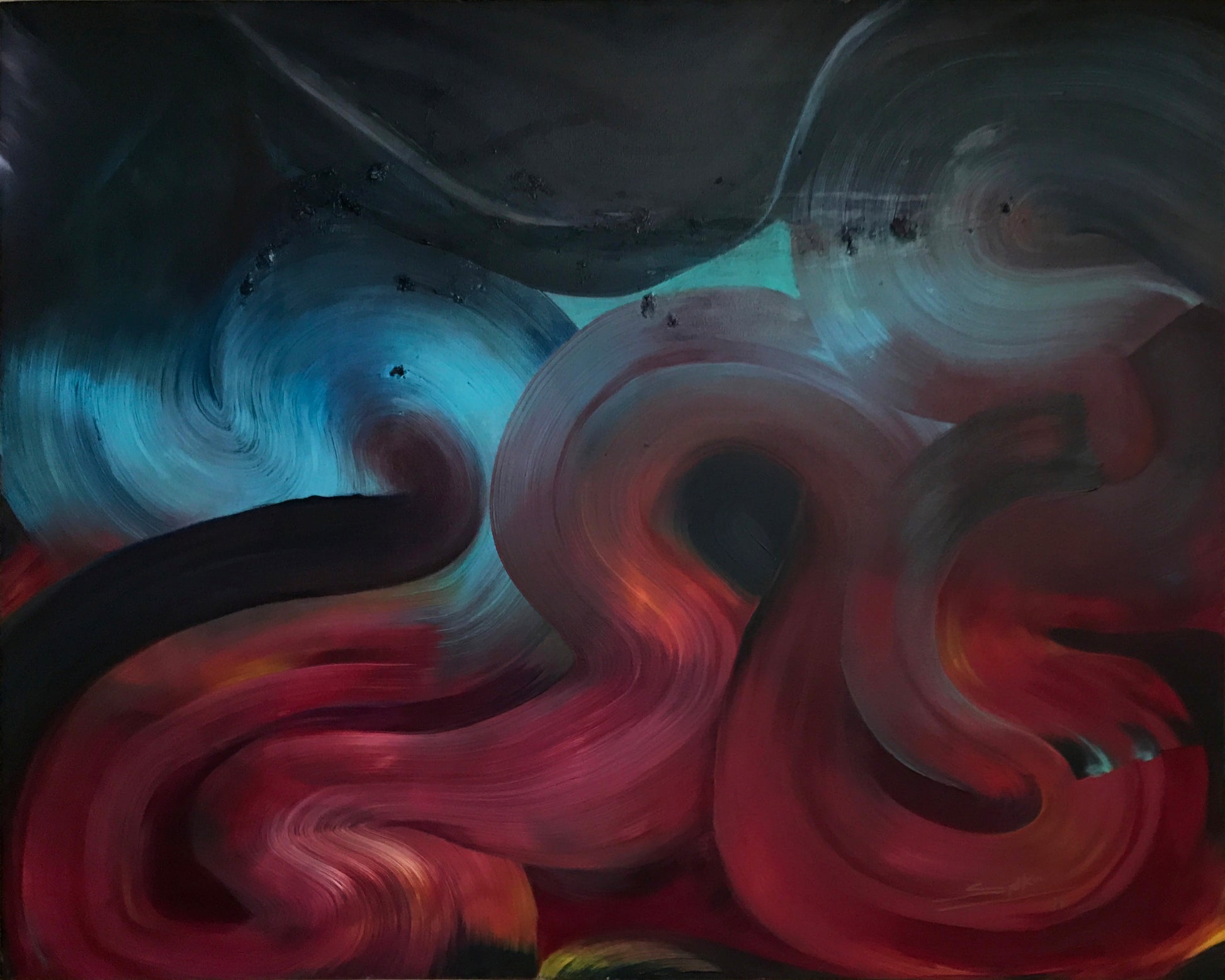 Dulce Locura, fue un auto-descubrimiento donde logré simplemente conectarme conmigo misma y con los colores que iban surgiendo. Es una obra donde me divertí haciéndola y es como un recordatorio de que debo dejar fluir y soltar.