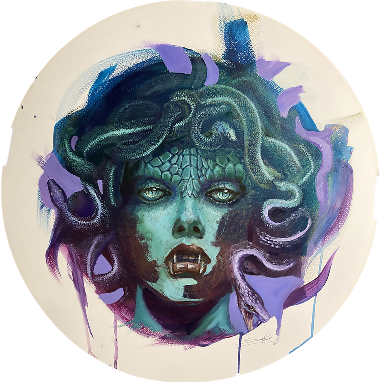 Euriale, a diferencia de Medusa se destacaba por tener un instinto maternal, se considera la madre del destino y creadora del mundo del caos. Era físicamente como un centauro y tenía colmillos de jabalí, piel de serpiente. Ademas poseia sangre mágica si se extraía del lado derecho era curativa y del lado izquierdo la sangre era venenosa.