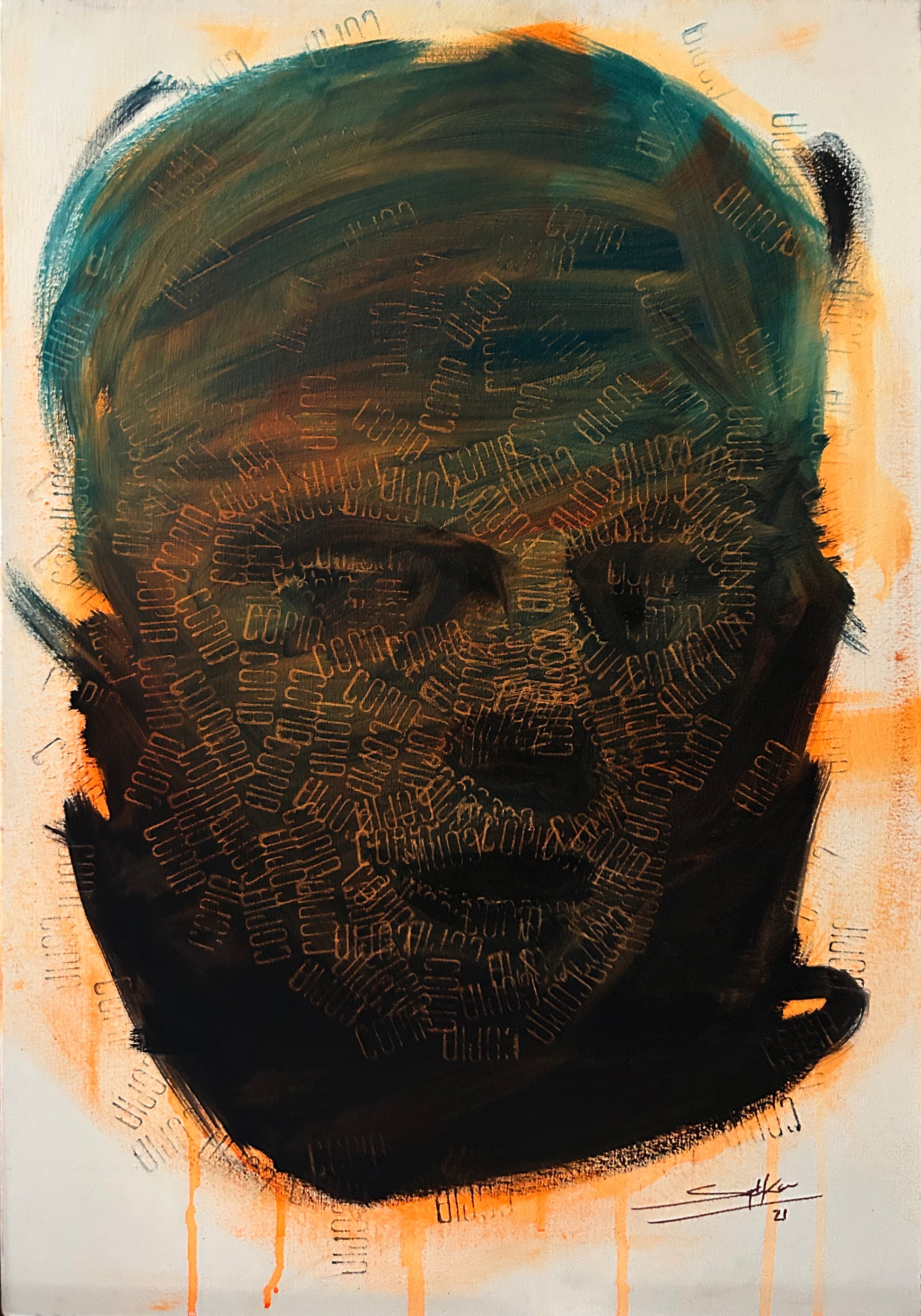A veces cuando pinto me gusta dejarme llevar sin pensar solo permitiendo el pincel y el sello hablen por si solos, creando de esta manera retratos imaginarios que quizás vienen de mi inconsciente de personas que no conozco o conocí en alguna parte de mi vida.