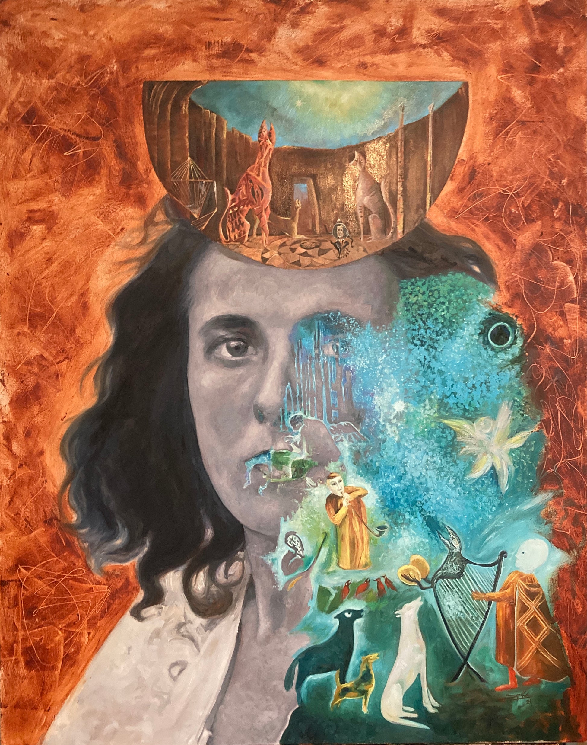 Leonora, forma parte de mi colección Mujeres Salvajes. Leonora fue una artista que vivió parte de su vida en México, fue parte de la comunidad de surrealistas tanto en Paris como en México. Fue vecina de Remedios Varo, con quien entabló una gran amistad que duro toda la vida.