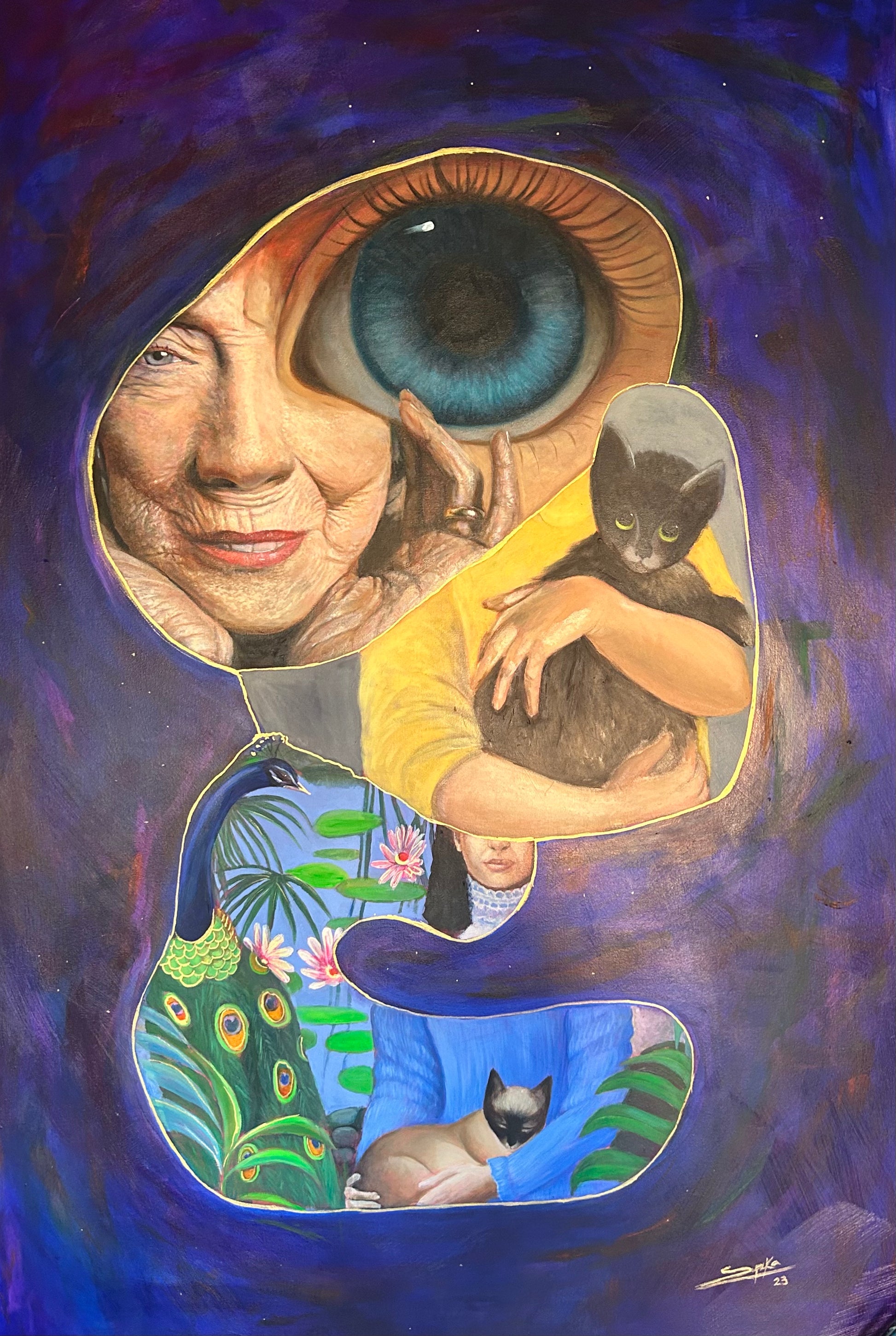 Margaret Keane, es una artista estadounidense que su esposo le contrató para vender su obra, luego de un juicio logró demostrar que ella era la artista de las obras y así poder ser independiente. Tim Burton hizo una película sobre su vida llamada Ojos grandes, gracias a él pude conocer su trabajo y su vida, quedé maravillado con su trabajo, me parece que retrata los ojos de una manera magistral. Por eso decidí captar un ojo enorme, ya que es lo que más la representa. Ella es parte de mi colección Wild Women; que son retratos de mujeres artistas que han sido invisibles en la historia del arte.