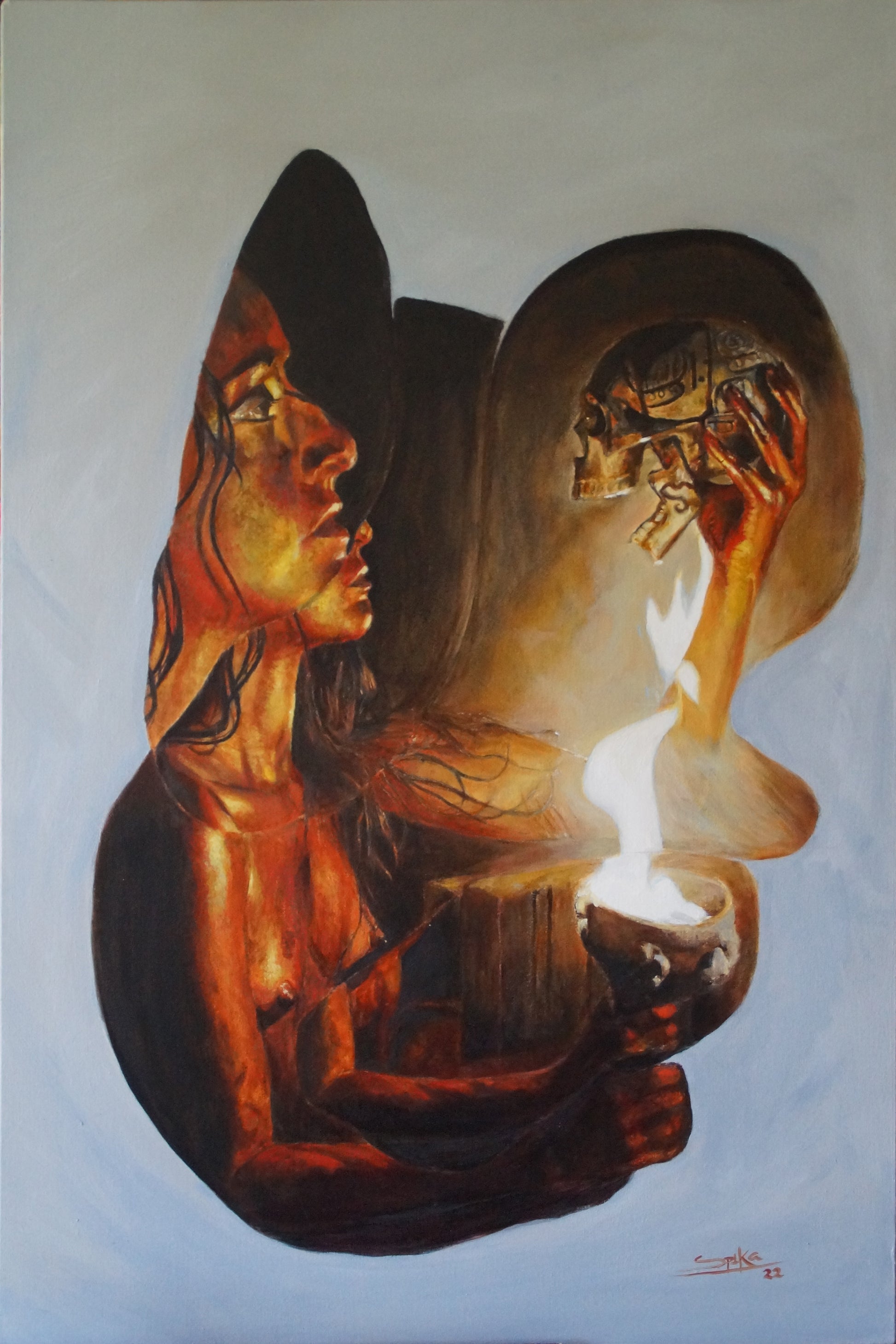 Mujer del copal es una pieza que hice durante el taller de Jose Luis Corella, en el taller decidí hacer esta pieza y fue bastante retadora ya que al hacerla en una tecnica distinta cambio mucho mi perspectiva de ver el realismo.